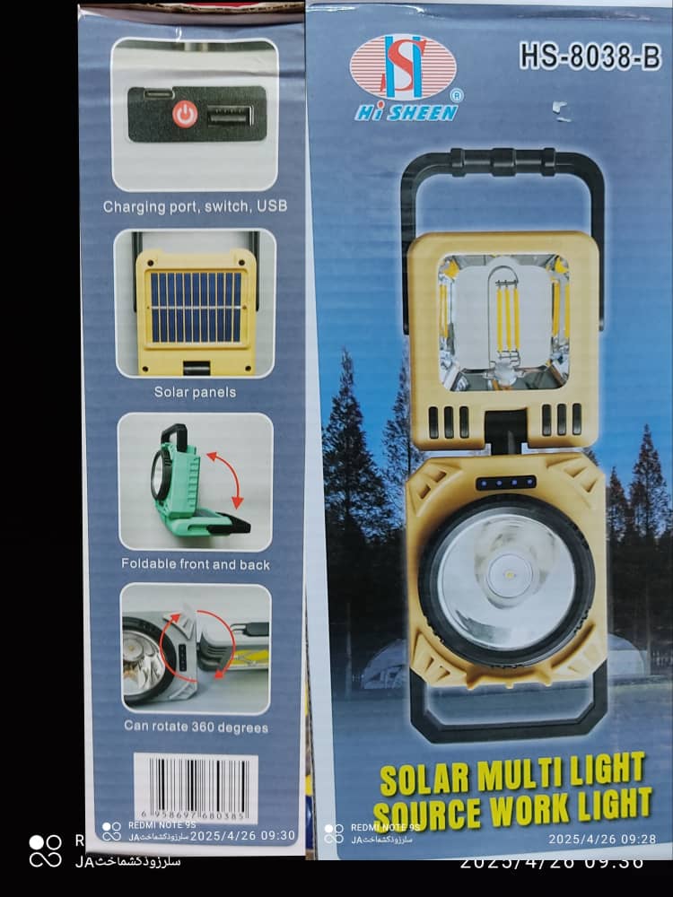 چراغ قوه و جعبه ابزار چندکاره با شارژر خورشیدی مدل 7739ناموجود
