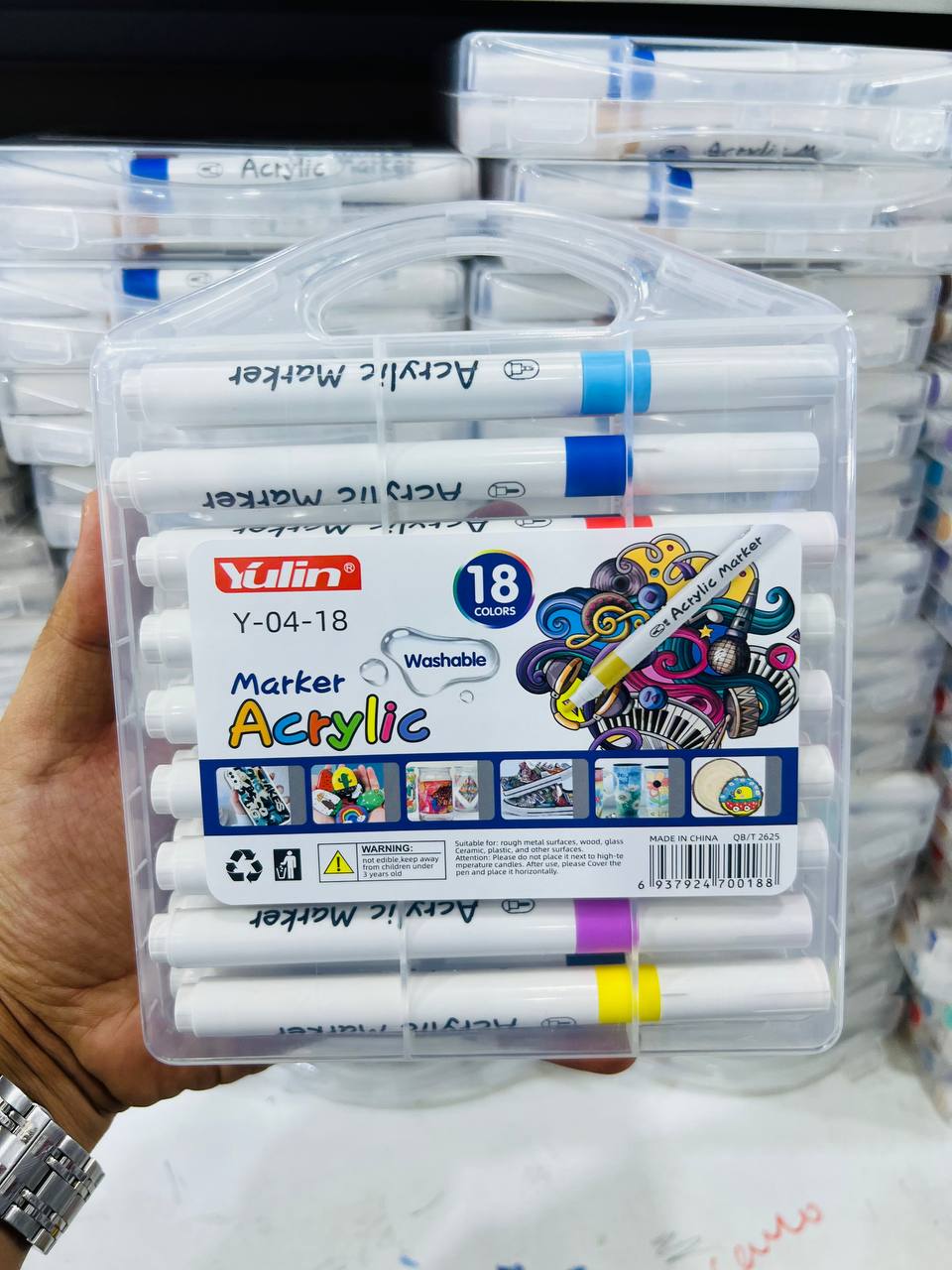 ماژیک رنگ آمیزی اکرلیک 18 رنگ جعبه دار وارداتی و با کیفیت - ماژیک 18 رنگناموجود